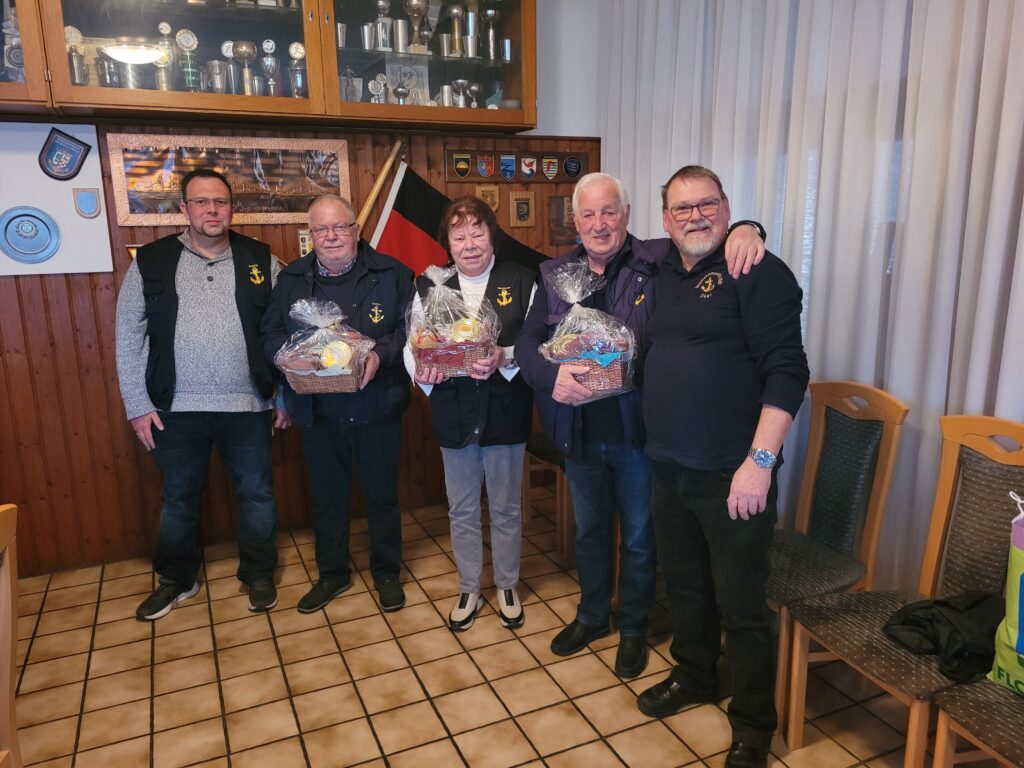 Bei der ersten Musterung des neuen Vorstandes am 10.04.2026 wurden Hans-Hermann Waschinski (1. Vorsitzender ), Margareta Waschinski ( Schriftführerin ) und Dieter Kersten ( Kassenwart ) offiziell mit einem Präsentkorb verabschiedet.